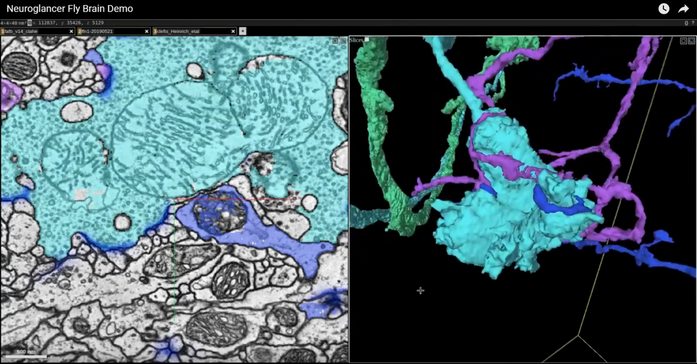 Ознакомиться с данными можно в обычном браузере при помощи специального интерфейса, получившего название Neuroglancer (дословно: нейронаблюдатель)[15].